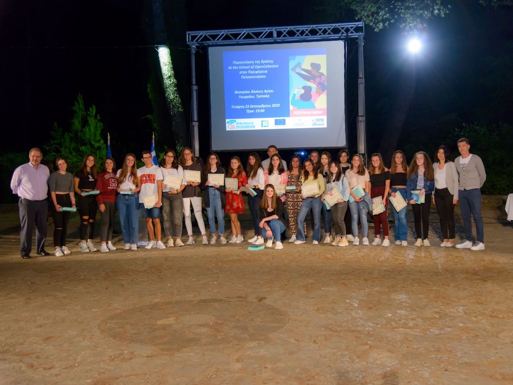 Η δραση “At the school of OpenCohesion” στην Περιφέρεια Πελοποννήσου παρουσιάστηκε στην Τρίπολη, το απόγευμα χθες Τετάρτη 23 Σεπτεμβρίου, στο θεατράκι του άλσους Αγίου Γεωργίου.