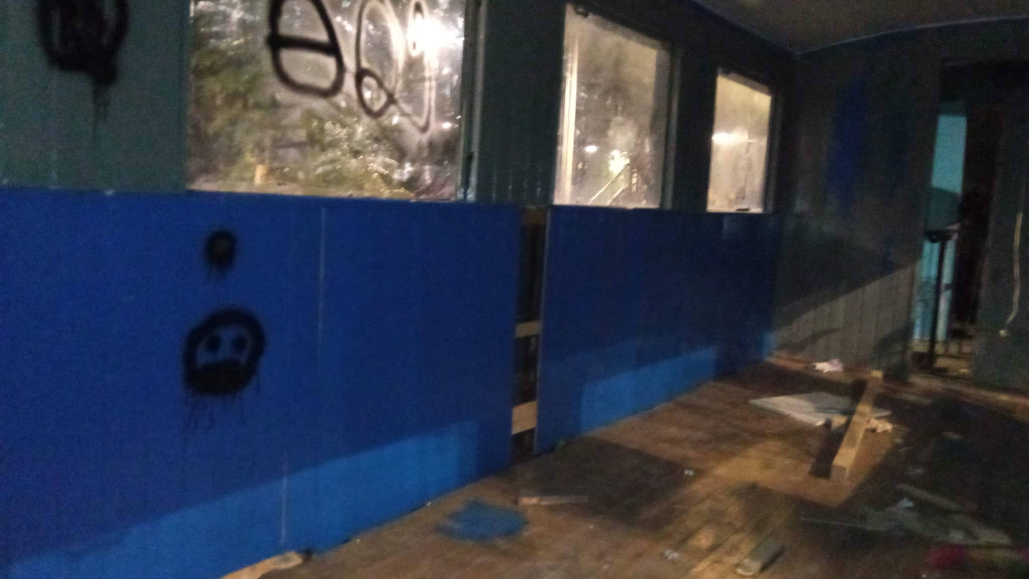 Πρόκειται για επισκευές οι οποίες είχαν φθάσει στο τελικό τους στάδιο και είχαν σταματήσει προσωρινά ελλείψει ηλεκτρικού ρεύματος, αλλά όπως φαίνεται και από τις φωτογραφίες που τράβηξαν τα μέλη του συλλόγου αγωνιστικής αλιείας, υπέστη σημαντικές φθορές από αγνώστους που εισέβαλαν στο χώρο.