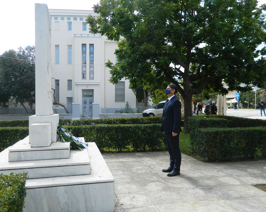 Ακολούθως μετέβησαν στο Ηρώο της κεντρικής πλατείας, όπου τελέστηκε επιμνημόσυνη δέηση. Στεφάνια κατέθεσαν ο Δήμαρχος Μεσσήνης Γιώργος Αθανασόπουλος, ο εκπρόσωπος της περιφέρειας Πελοποννήσου Ανδρέας Τσουκαλάς, ο εκπρόσωπος των Σωμάτων Ασφαλείας Διοικητής του Α.Τ. Μεσσήνης Γιώργος Χαραλαμπάκης, ο εκπρόσωπος του Λιμενικού Σώματος υποπλοίαρχος Αθανάσιος Πετρόπουλος, ο εκπρόσωπος του Πυροσβεστικού Σώματος υποπυραγός Ιωάννης Κυρίτσης και ο πρόεδρος της Δημοτικής Κοινότητας Μεσσήνης Νικόλαος Ρούτσης. Τέλος, τηρήθηκε ενός λεπτού σιγή και η εκδήλωση ολοκληρώθηκε με την ανάκρουση του Εθνικού μας Ύμνου.