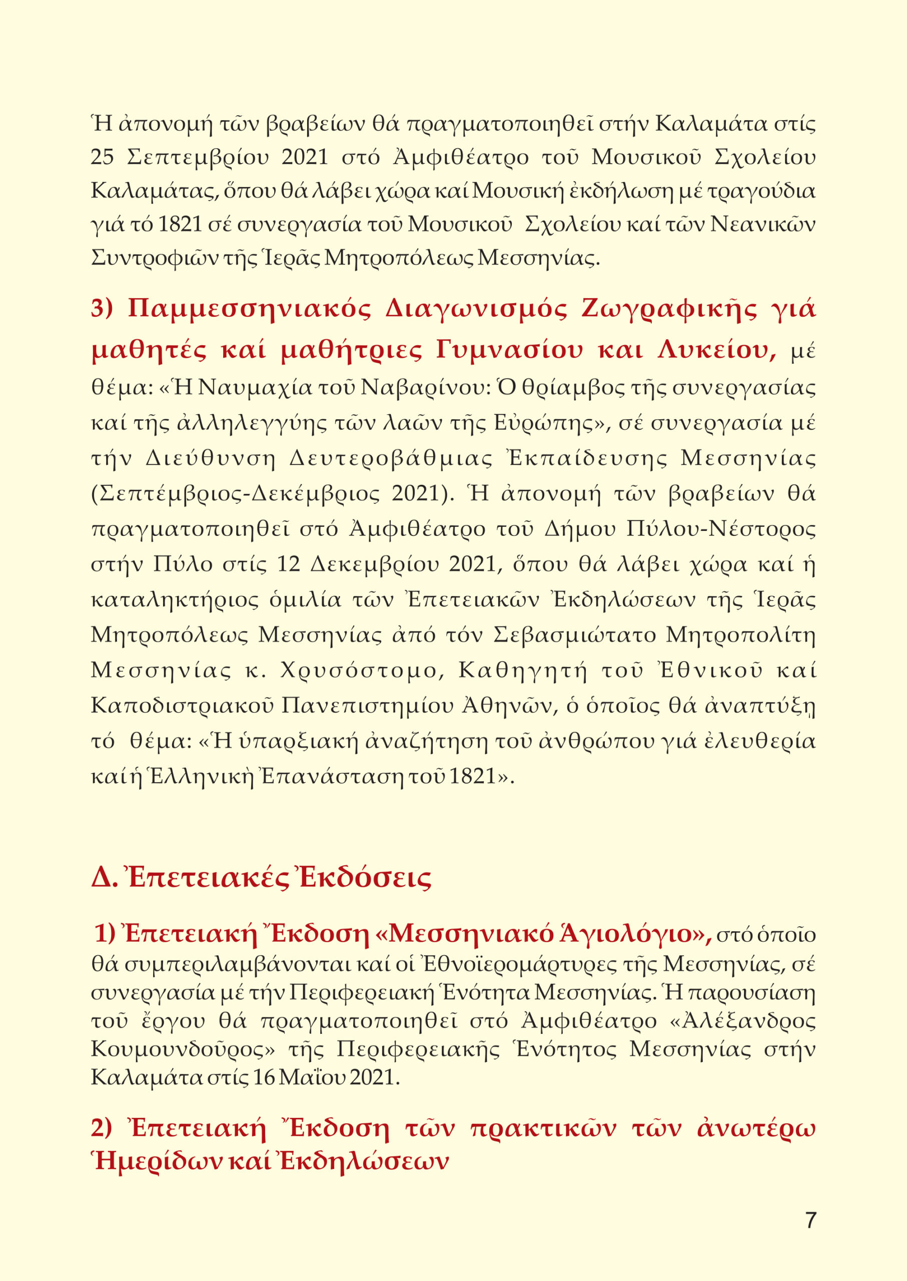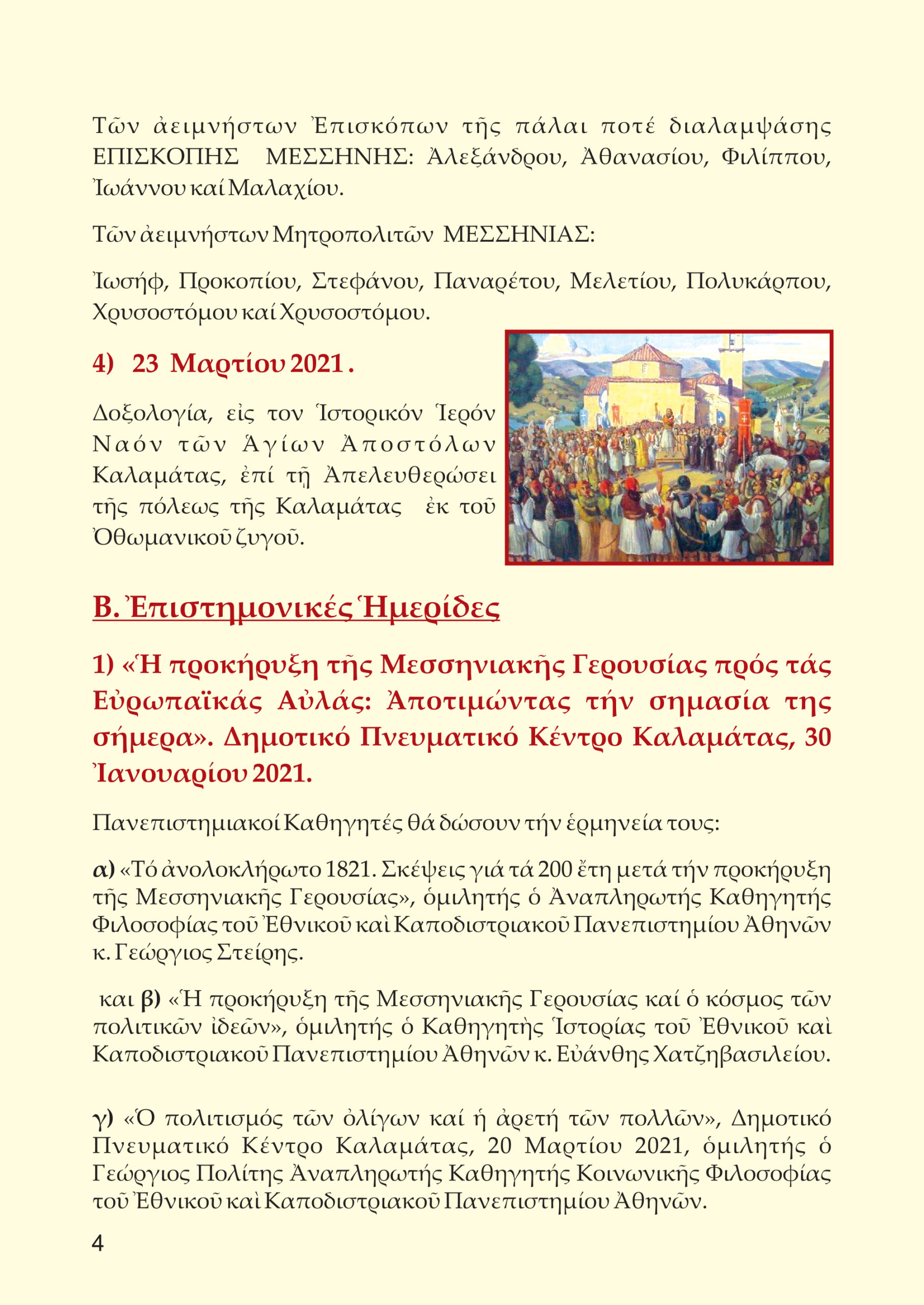 Η Ιερά Σύνοδος της Εκκλησίας της Ελλάδος και οι κατά τόπους Ιερές Μητροπόλεις, διοργανώνουν διαφόρους Επετειακές Εκδηλώσεις, διά τον Εορτασμό της συμπληρώσεως διακοσίων ετών από την έναρξη της Ελληνικής Επαναστάσεως του 1821.