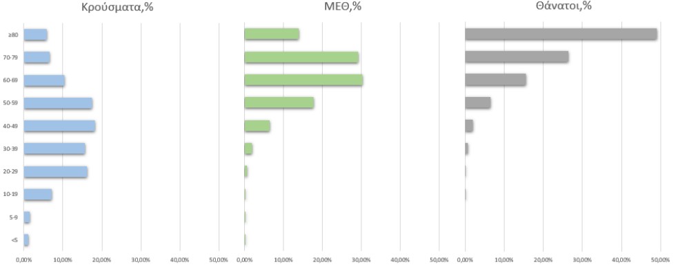 Η διάμεση ηλικία των κρουσμάτων είναι 44 έτη (εύρος 0.2 έως 105 έτη), ενώ η διάμεση ηλικία των θανόντων είναι 79 έτη (εύρος 15 έως 103 έτη)