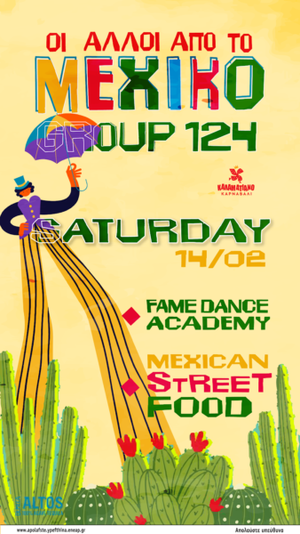 Παράλληλα, στον Πεζόδρομο Σφακτηρίας, από τις 20:00, το κοινό θα απολαύσει εντυπωσιακό show με ξυλοπόδαρους, Fame dance show και γεύσεις Mexican street food, δημιουργώντας μια ξεχωριστή street carnival εμπειρία στο κέντρο της πόλης.