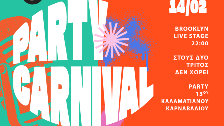 Το καρναβαλικό κέφι μεταφέρεται στο Brooklyn Live Stage, όπου στις 22:00 θα πραγματοποιηθεί το Karaoke Party με τίτλο «Στους δύο τρίτος δεν χωρεί», σε μια βραδιά γεμάτη μουσική, χορό και αποκριάτικη διάθεση.