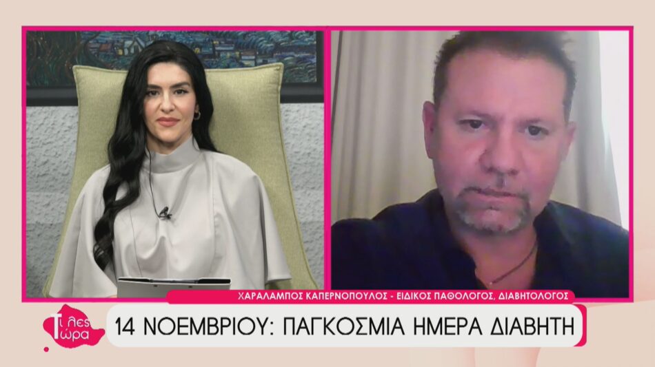 Με αφορμή την Παγκόσμια Ημέρα Διαβήτη (14 Νοεμβρίου), ο Ειδικός Παθολόγος – Διαβητολόγος,  Χαράλαμπος Καπερνόπουλος, καλεσμένος στην εκπομπή «Τι Λες Τώρα» με την Αναστασία Μάντζαρη, μίλησε για την σπουδαιότητα της ημέρας, την άμεση ανάγκη για προληπτικό έλεγχο , καθώς και στην υιοθέτηση ενός υγιεινού τρόπου ζωής, τονίζοντας ότι η έγκαιρη διάγνωση και η σωστή ρύθμιση της νόσου είναι το κλειδί για την αποφυγή των σοβαρών επιπλοκών.