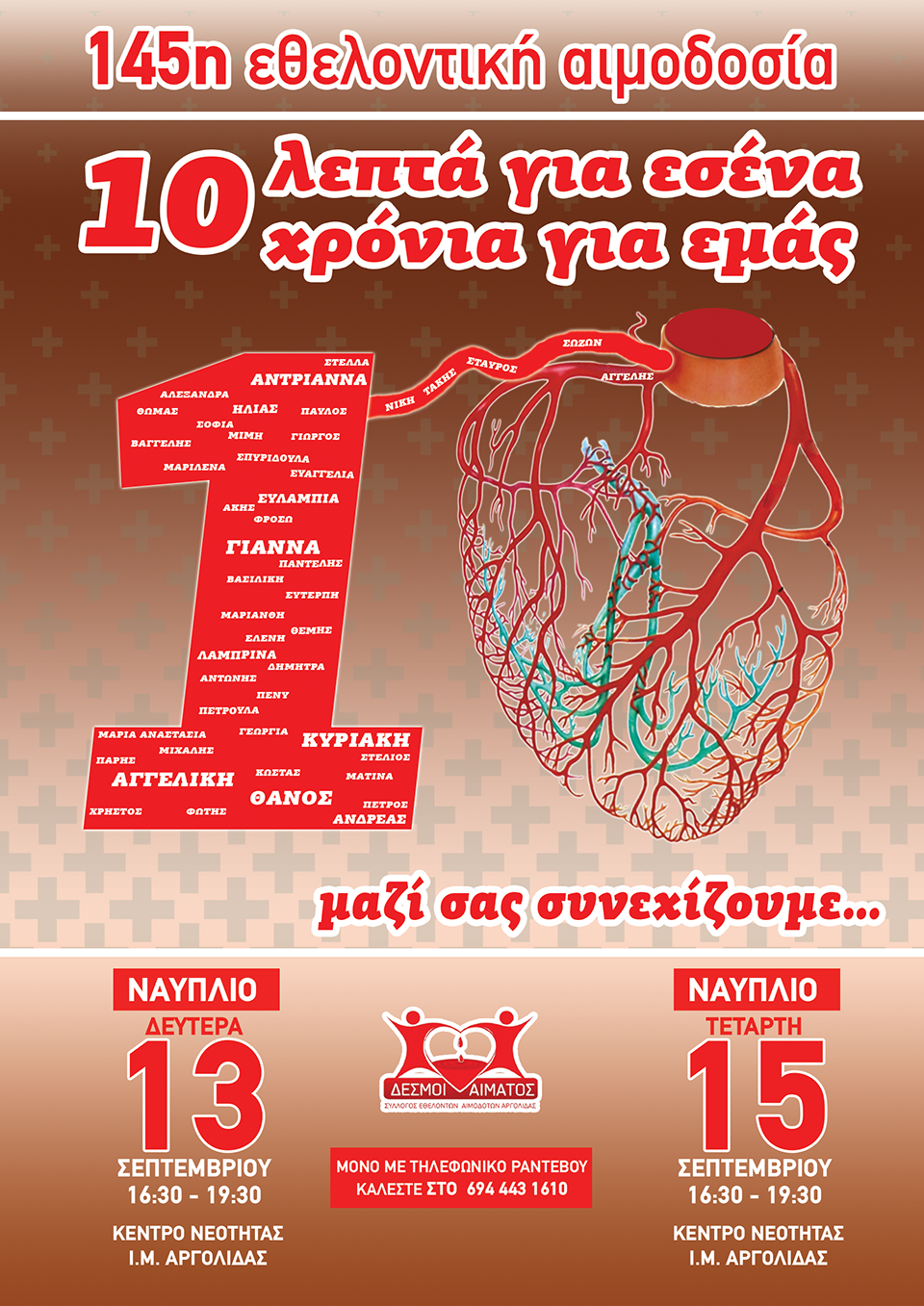 Η ΑΙΜΟΔΟΣΙΑ ΘΑ ΓΙΝΕΙ ΜΟΝΟ ΜΕ ΡΑΝΤΕΒΟΥ ΓΙΑ ΤΗΝ ΑΠΟΦΥΓΗ ΣΥΝΩΣΤΙΣΜΟΥ ΚΑΙ ΜΕΤΑΔΟΣΗΣ ΤΟΥ COVID 19. ΟΣΟΙ ΕΠΙΘΥΜΟΥΝ ΝΑ ΑΙΜΟΔΟΤΗΣΟΥΝ ΝΑ ΚΑΛΕΣΟΥΝ ΣΤΟ 694 443 1610.