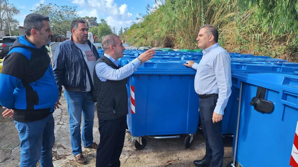 Παραδόθηκαν στο Δήμο Καλαμάτας 132 πλαστικοί κάδοι χωρητικότητας 1.100 λίτρων, χρώματος μπλε, με ποδομοχλό καθώς και 15 κάδοι 120 λίτρων, για τα ανακυκλώσιμα απορρίμματα.