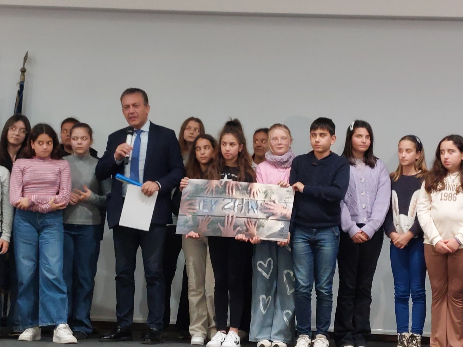 Στην κατάμεστη από μαθητές όλων των εκπαιδευτικών βαθμίδων αίθουσα του Υπουργείου Παιδείας, Θρησκευμάτων και Αθλητισμού, πραγματοποιήθηκε, την Τρίτη 12/12/2023, η τελετή απονομής βραβεύσεων των σχολικών μονάδων που διακρίθηκαν για τη συμμετοχή τους στην Πανελλαδική Σκυταλοδρομία «Τρέχω για το ΕΥ».