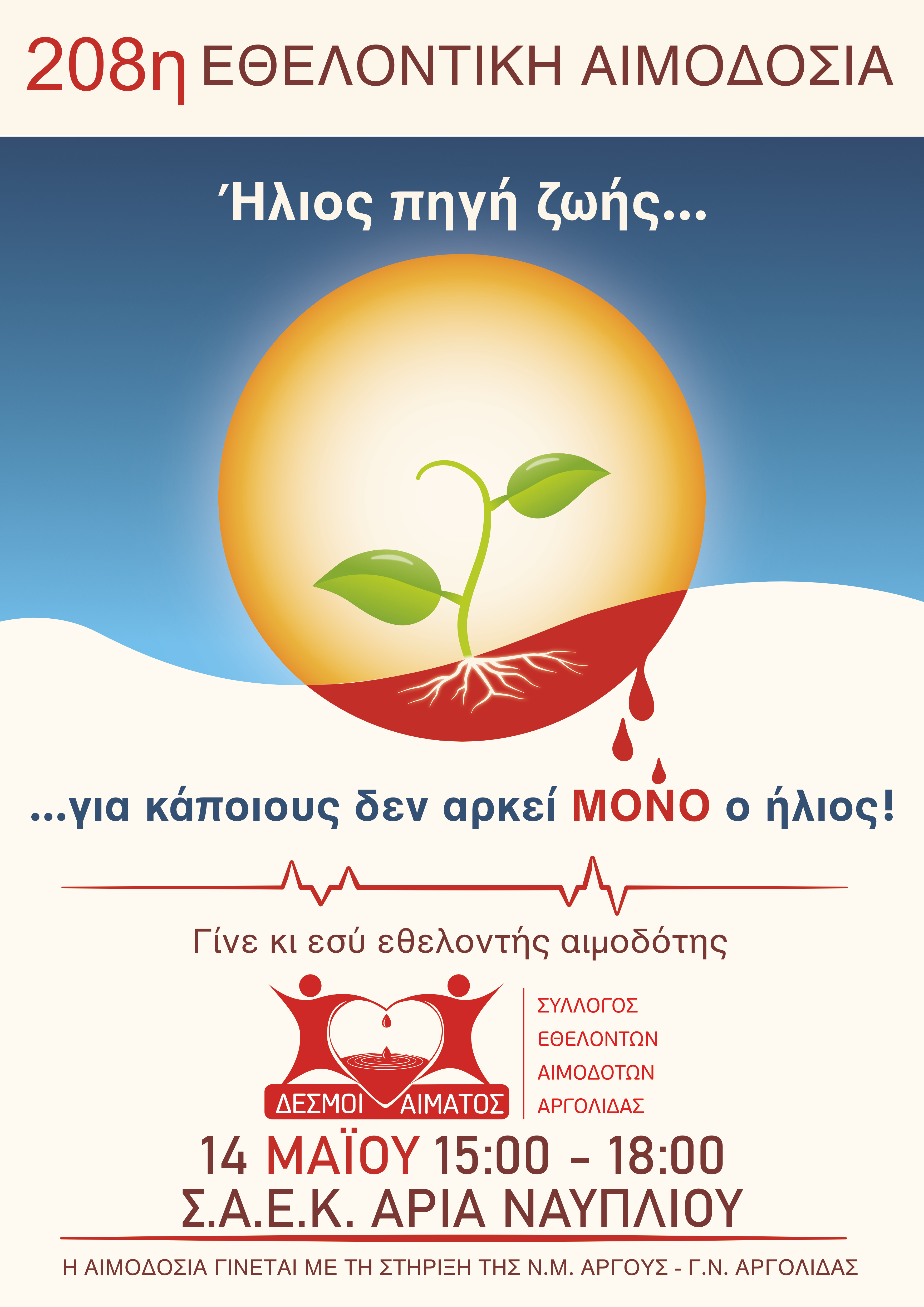 Όλοι έχουμε τη δύναμη να γίνουμε ήρωες στις καρδιές αυτών που χρειάζονται. Μια σταγόνα αίματος από εσάς μπορεί να σημαίνει μια ζωή για κάποιον άλλο. Με κάθε αιμοδοσία, δε δίνετε μόνο αίμα, αλλά ελπίδα, δύναμη και θάρρος σε όσους αγωνίζονται για τη ζωή τους.