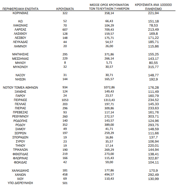 Συνολικά στην Περιφέρεια Πελοποννήσου οι μολύνσεις του τελευταίου 24ωρου ανέρχονται σε 1.878.