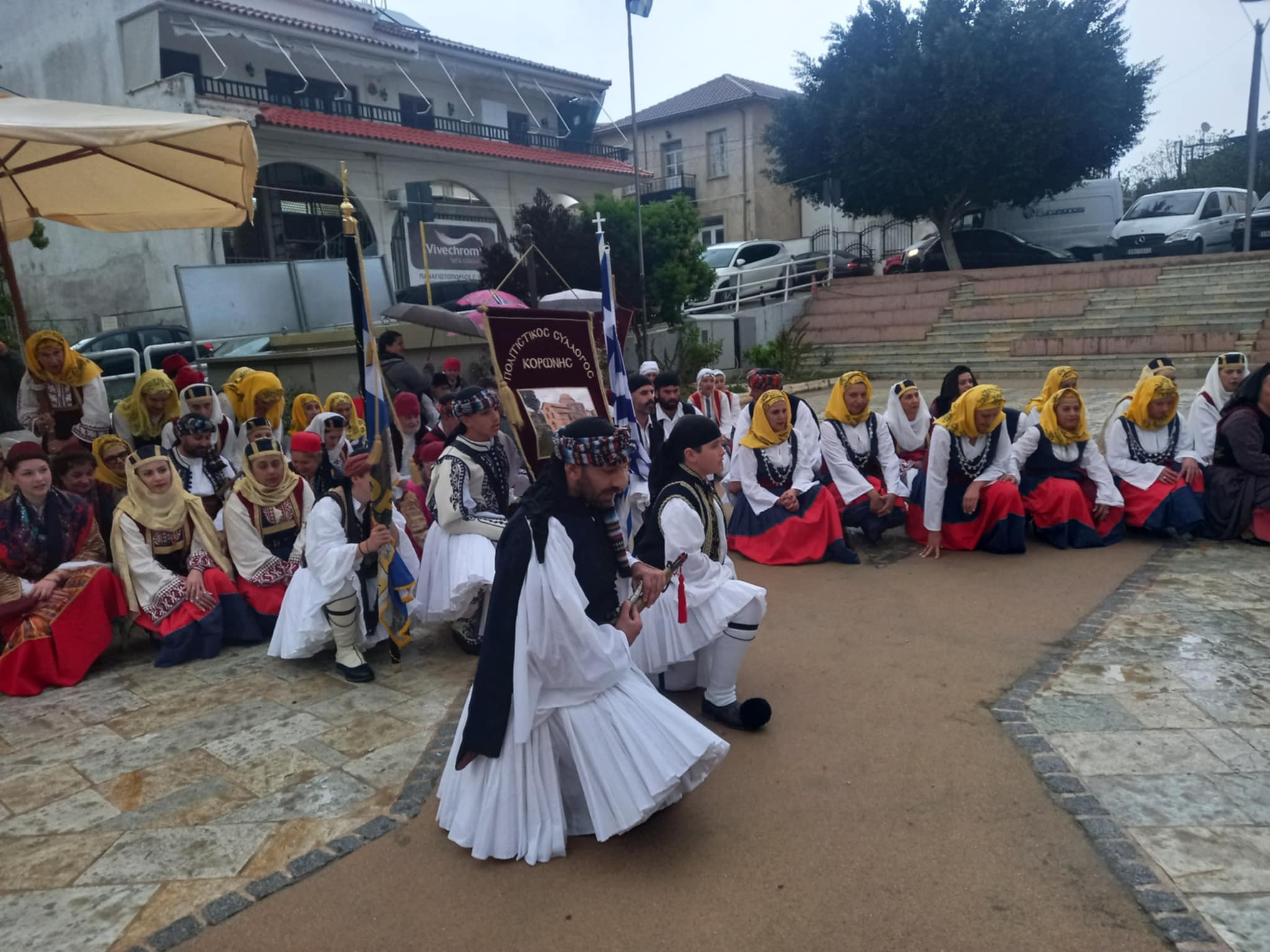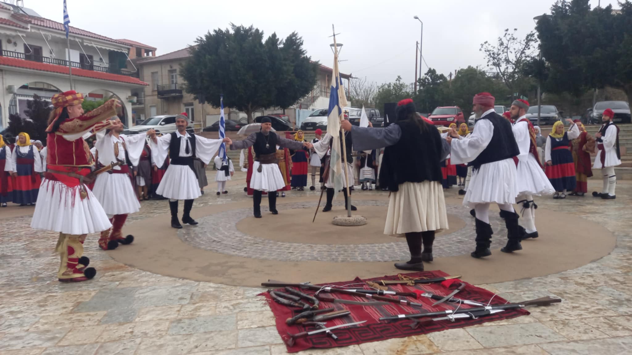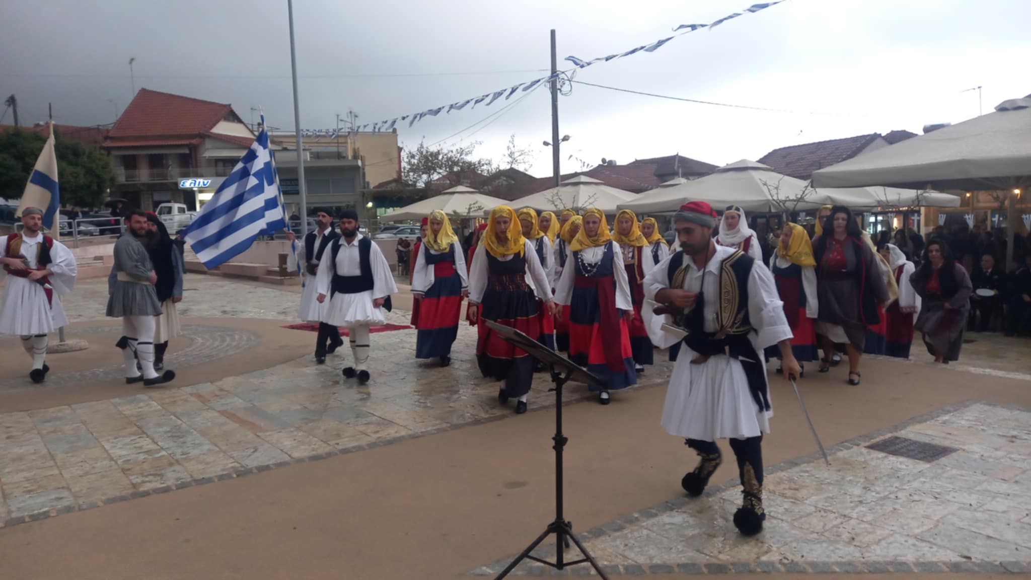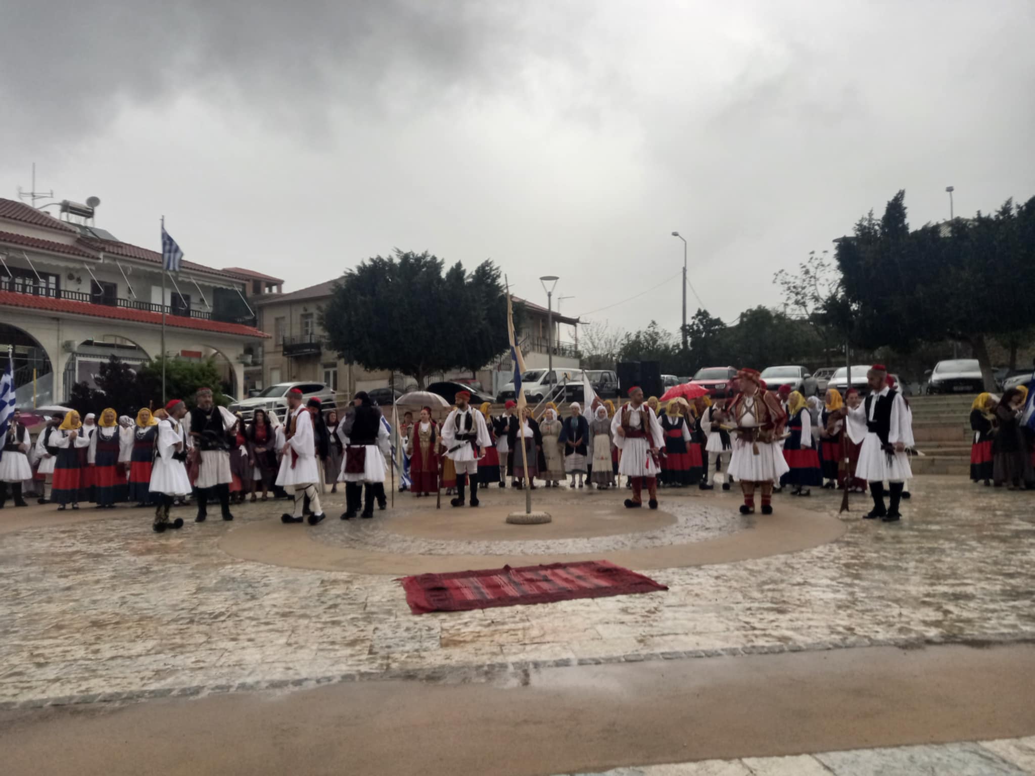 Το τελετουργικό συνεχίστηκε στην Κεντρική Πλατεία Χώρας, με τον άστατο καιρό να μην αποτελεί σύμμαχο, τροποποιώντας το πρόγραμμα.