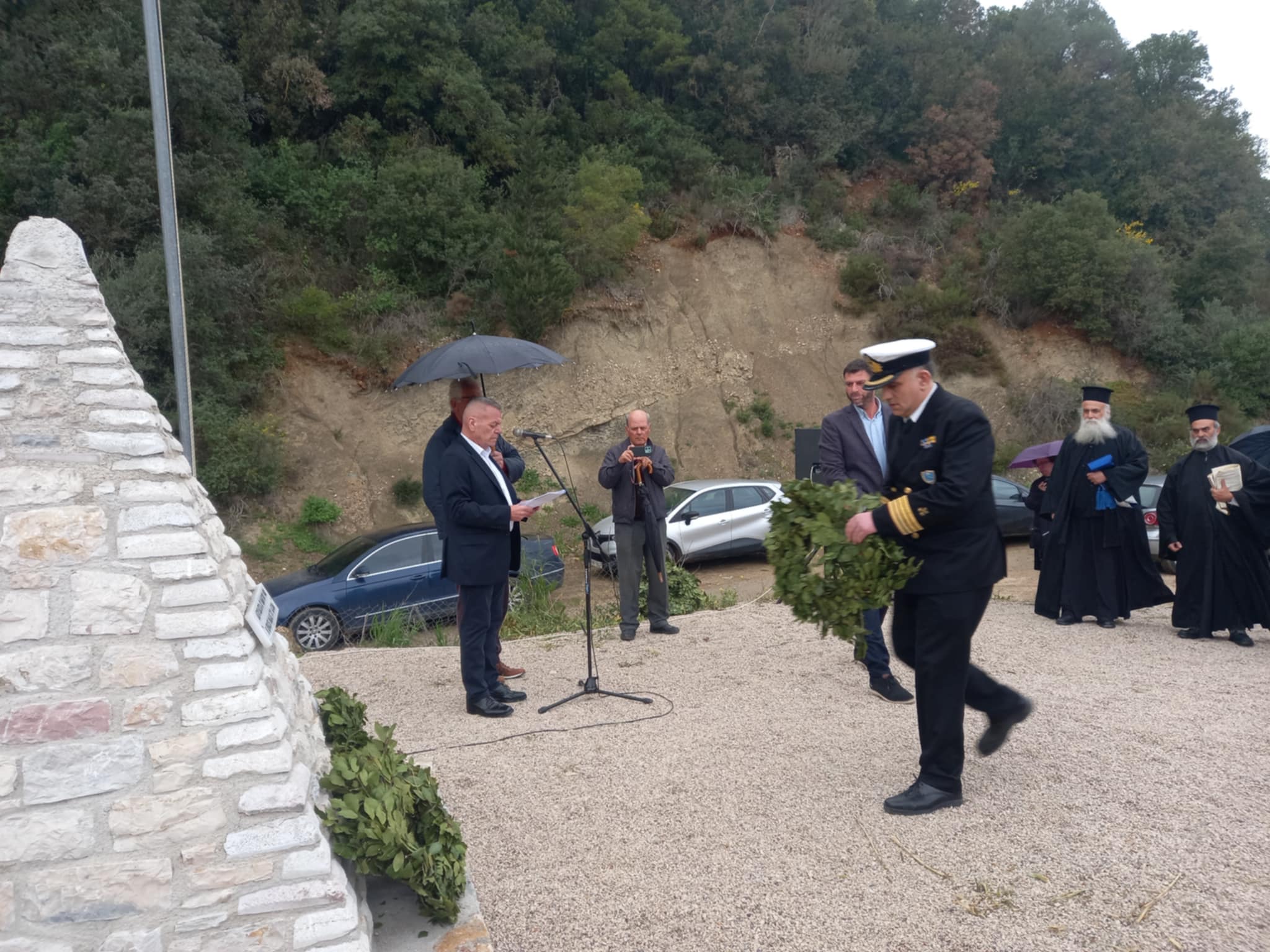 Ακολούθησε κατάθεση στεφάνων από τον Δήμαρχο Πύλου – Νέστορος Παναγιώτη Καρβέλα, τον Αντιδήμαρχο της Δ.Ε. Νέστορος Δημήτρη Γαϊτάνη, τον εκπρόσωπο της Δημοτικής Ενότητας Χώρας, τοπικό σύμβουλο Χαράλαμπο Μπαχούμα, τον Λιμενάρχη Πύλου, πλοίαρχο Λ.Σ. Χρήστο Μπιμπή, τον υποδιοικητή του Α.Τ. Γαργαλιάνων Υπαστυνόμο Χαράλαμπο Μητρόπουλο,