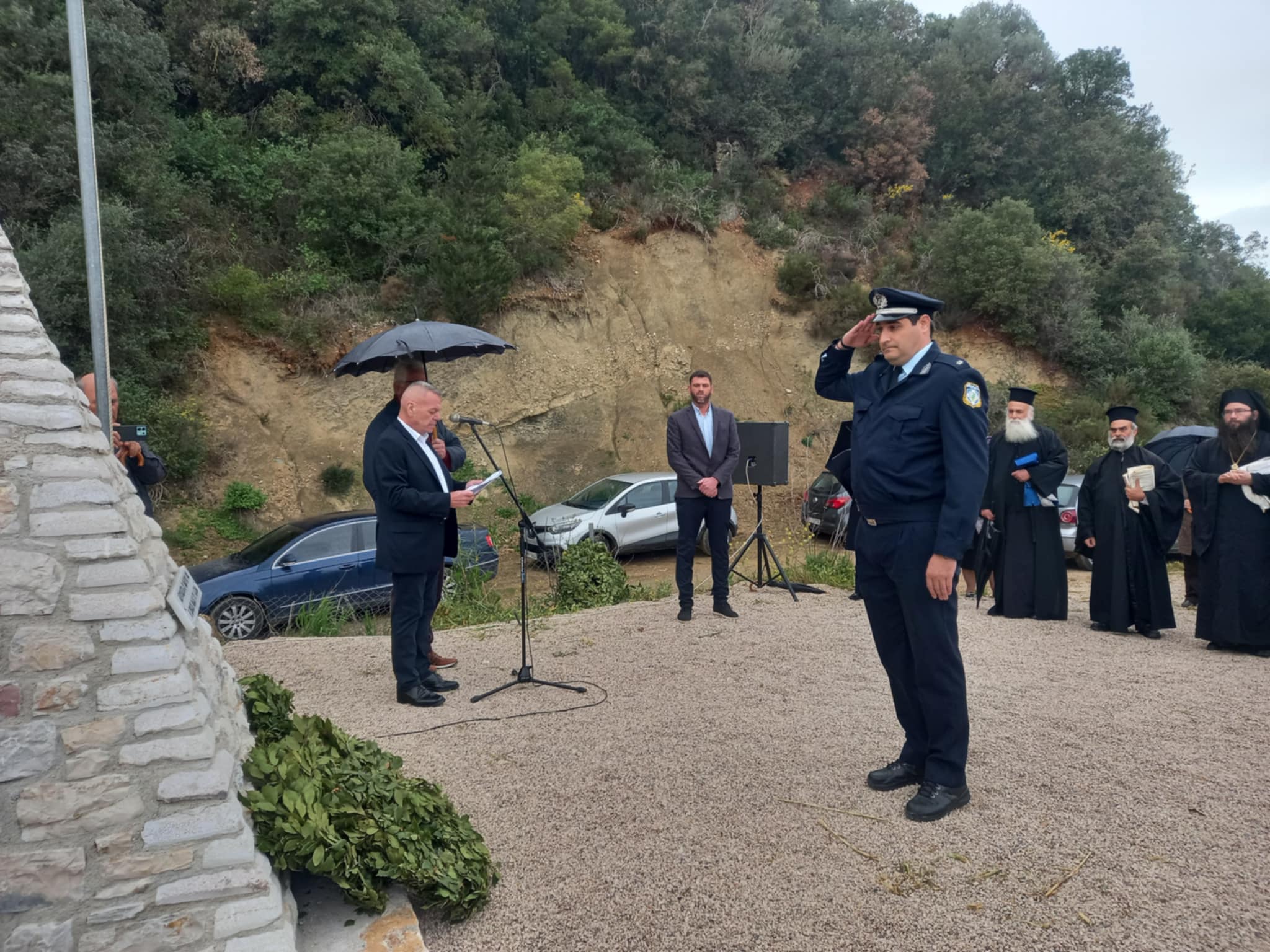 τον ιατρό – συγγραφέα Γιάννη Μπίρη και τον αντιπρόεδρο του Λαογραφικού Ομίλου Χώρας Δημήτρη Παυλόπουλο, ενώ στη συνέχεια τηρήθηκε ενός λεπτού σιγή στη μνήμη των ένδοξων νεκρών και έγινε ανάκρουση του εθνικού ύμνου.
