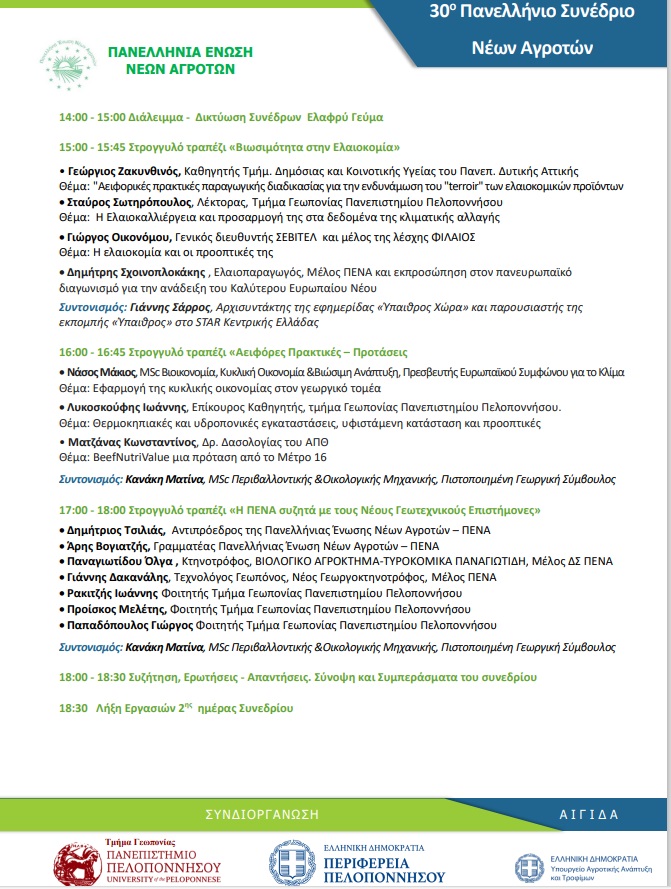 Η Καλαμάτα βρίσκεται για μια ακόμη φορά στο επίκεντρο των εξελίξεων που αφορούν στον πρωτογενή τομέα με το 30ο Πανελλήνιο Συνέδριο Νέων Αγροτών, που θα φιλοξενηθεί στη Σχολή Γεωπονίας του Πανεπιστημίου Πελοποννήσου. Από τις 20 έως τις 22 Σεπτεμβρίου, οι εργασίες του ετήσιου συνεδρίου της Πανελλήνιας Ένωσης Νέων Αγροτών, που αποτελεί θεσμό για τον αγροδιατροφικό κλάδο, βάζουν στο τραπέζι των συζητήσεων όλα τα ζητήματα που απασχολούν σήμερα τους νέους αγρότες.