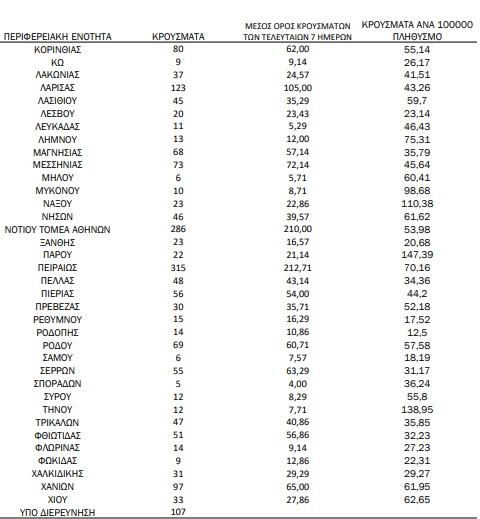 Μείωση των κρουσμάτων στην Πελοπόννησο παρουσιάζεται στη σημερινή ανακοίνωση του ΕΟΔΥ, με τη Μεσσηνία να «δίνει» 73 νέες μολύνσεις και συνολικά την Περιφέρεια 479 κρούσματα κορωνοϊού.