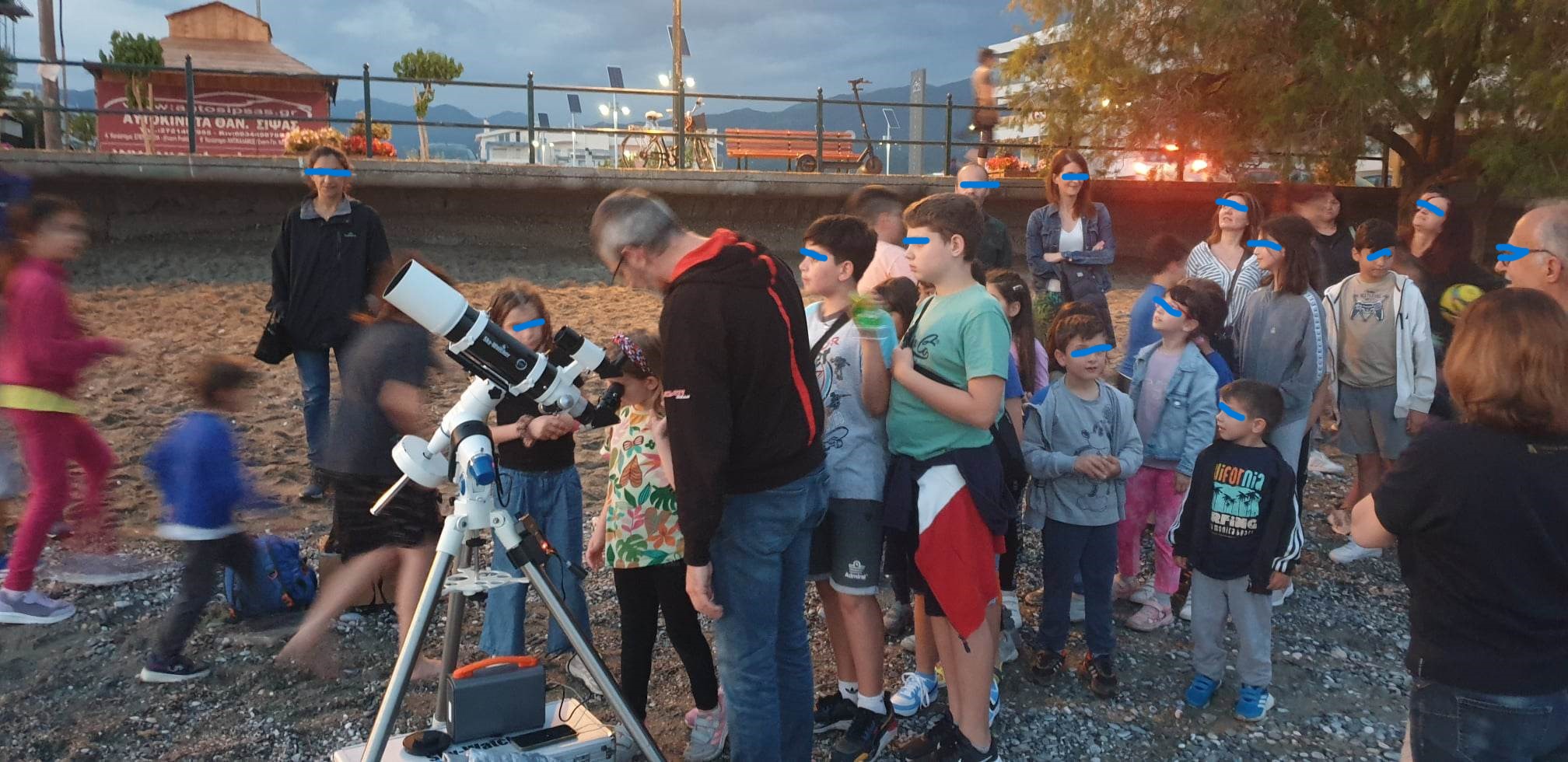 Την βραδιά της Τρίτης, στις 23 Μαΐου, η παραλία της πόλης της Καλαμάτας μεταμορφώθηκε σε έναν αστρικό κόσμο που είχε επισκεφθεί μια ομάδα περίεργων και περιπετειώδων μικρών αστρονόμων. Οι μαθητές της Β΄ τάξης του 7ου Δημοτικού Σχολείου Καλαμάτας, μαζί με τους δασκάλους τους, Δημήτρη Δημητρίου και Μπαλιάμη Παναγιώτη, και με την πολύτιμη συνεισφορά ενός γονέα μαθητή που παρείχε ένα εξαιρετικό τηλεσκόπιο, αποφάσισαν να ζήσουν μια μοναδική εμπειρία αστροπαρατήρησης.