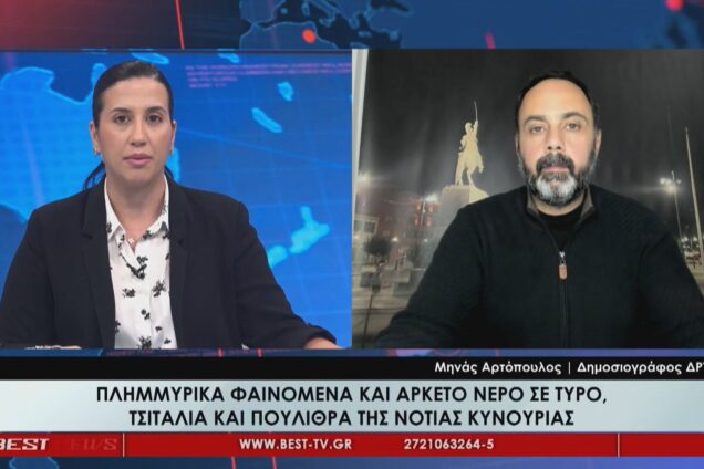 Πλημμυρικά φαινόμενα και αρκετό νερό σε Τυρό, Τσιτάλια και Πούλιθρα της Νότιας Κυνουρίας, έφερε η κακοκαιρία Buron με τα φαινόμενα πιο ήπια συγκριτικά με άλλες πληγείσες περιοχές της Πελοποννήσου. Το θέμα σχολίασε στο κεντρικό δελτίο ειδήσεων του Best ο δημοσιογράφος
