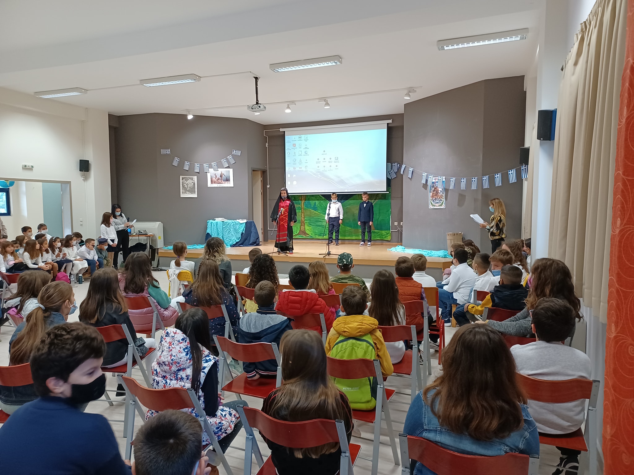 Με εναλλαγές σε σκετς, ποιήματα, τραγούδια και με πιστή τήρηση όλων των υγειονομικών κανόνων με την καθοδήγηση των εκπαιδευτικών κ.κ. Φίλης Ντόγκα , μίλησε για τα γεγονότα των ημερών του 1940, Ιφινόης Σωρηράκου και Μαρίας Εικοσιπένταρχου , οι μαθητές απέδωσαν καταπληκτικά και ανέδειξαν τις αξίες της ελευθερίας και της δημοκρατίας, τον αγώνα των όλων Ελλήνων για ελεύθερη και δημοκρατική πατρίδα.