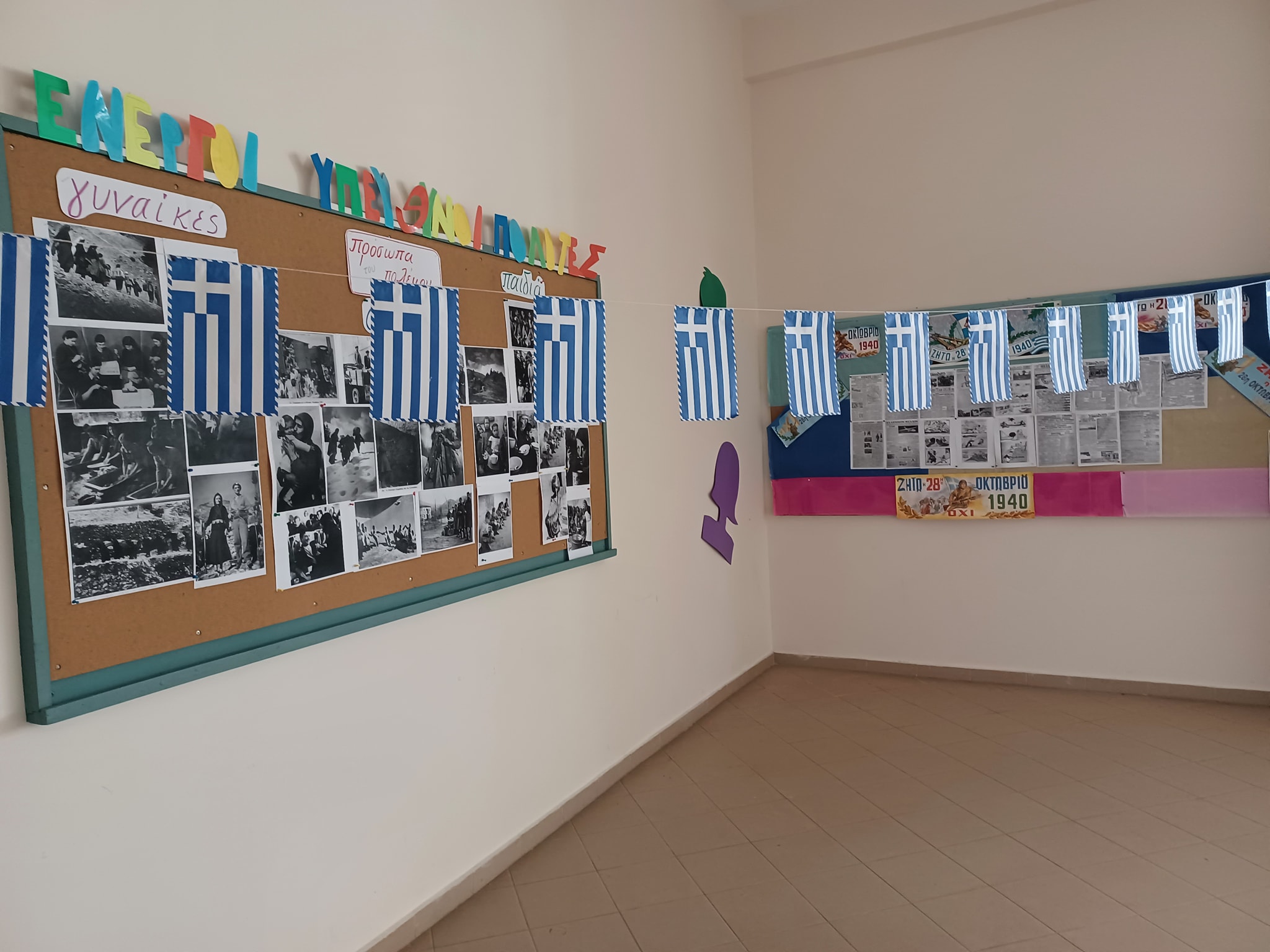 Παράλληλα στο ισόγειο του σχολείου λειτουργούν 2 εκθέσεις α) πρόσωπα του πολέμου, γυναίκες, άνδρες, παιδιά και β) τα γεγονότα μέσα από τον τύπο της εποχής.