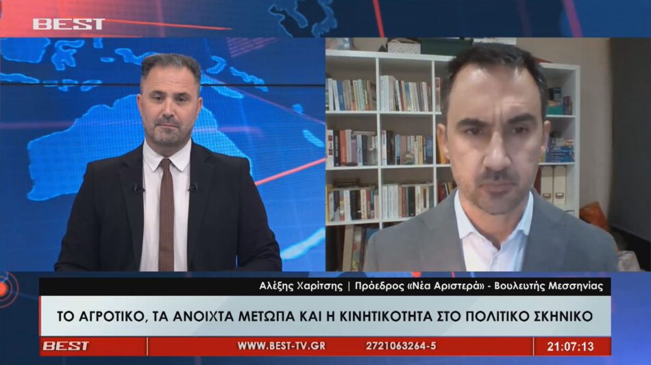 Πολλά ανοιχτά τα μέτωπα με το αγροτικό να “καίει” την ώρα που η… αναστάτωση πολιτικό σκηνικό καλά κρατεί.. «Η κυβέρνηση Μητσοτάκη έχει πια πάρει χαρακτήρα καθεστώτος» τόνισε μιλώντας στο Κεντρικό Δελτίο Ειδήσεων της τηλεόρασης BEST ο Πρόεδρος της «Νέας Αριστεράς» και βουλευτής Μεσσηνίας Αλέξης Χαρίτσης, σημειώνοντας παράλληλα ότι «…Δεν πρέπει να έχει τρίτη τετραετία ο κ. Μητσοτάκης, αυτό θα είναι καταστροφικό και είναι ευθύνη της αντιπολίτευσης να μη δοθεί ευκαιρία. Έτσι ανάγκη είναι να υπάρξει συσπείρωση δυνάμεων της Αριστεράς η οποία θα παρουσιάσει ένα πρόγραμμα». Ερωτώμενος για τα όσα αναφέρονται γύρω από το κόμμα Καρυστιανού: «Η κα. Καρυστιανού έχει κάθε δικαίωμα να διεκδικήσει την ψήφο των Ελλήνων πολιτών”, με τον κ. Χαρίτση ωστόσο να σημειώνει χαρακτηριστικά πως πρέπει να υπάρχουν καθαρές θέσεις και “ένα σαφές μέτωπο που να προασπίζει τα συμφέροντα των λαϊκών στρωμάτων» και να επισημαίνει ότι “…θεωρώ ότι η διάκριση Δεξιάς – Αριστεράς είναι πιο υπαρκτή και αναγκαία από ποτέ. Πρέπει να υπάρχει ένα σαφές μέτωπο που να προασπίζει τα συμφέροντα των λαϊκών στρωμάτων”.