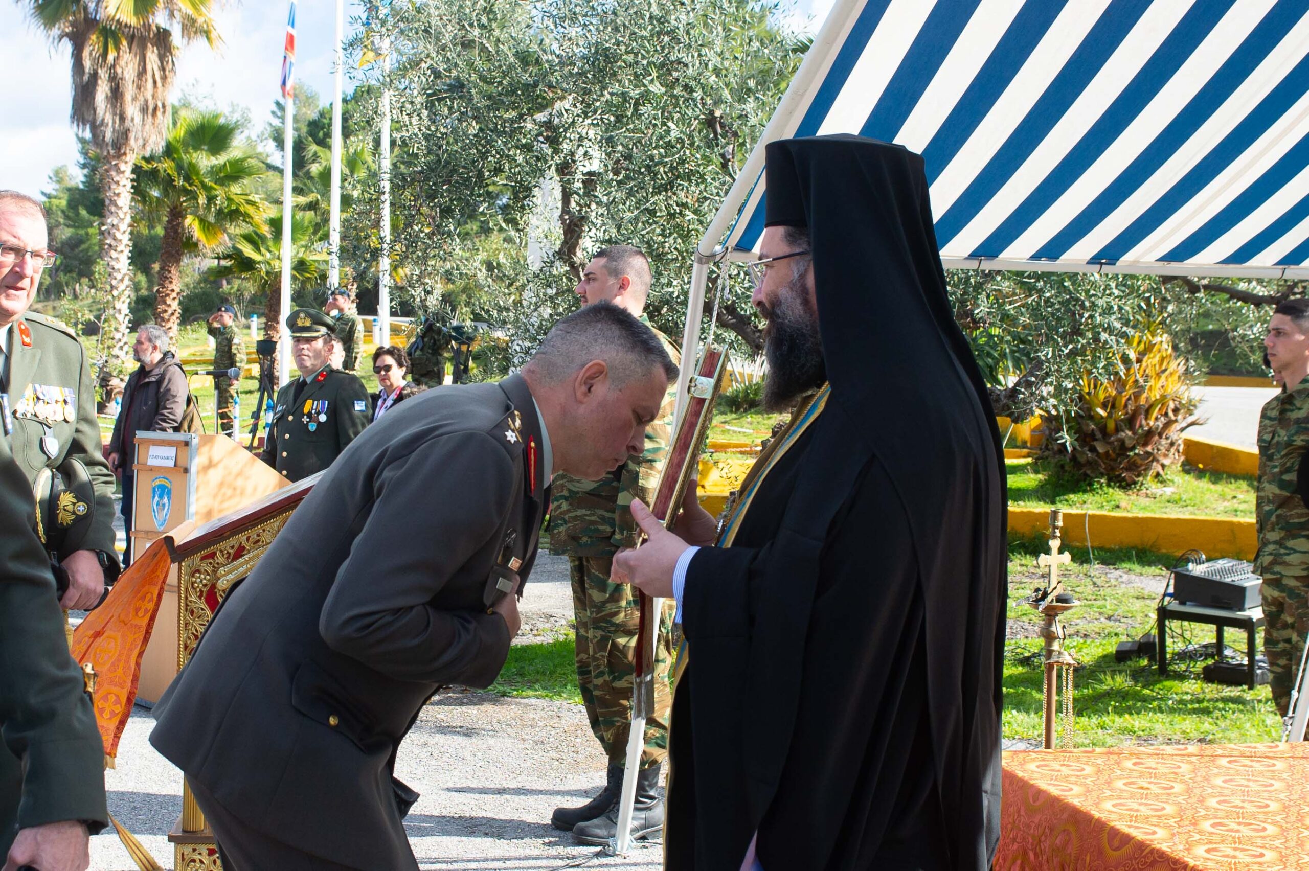 Πραγματοποιήθηκε το πρωί της Παρασκευής 31 Ιανουαρίου 2025, η τελετή Παράδοσης – Παραλαβής Διοίκησης στο 9ο Σύνταγμα Πεζικού Καλαμάτας. Στο πλαίσιο της τελετής αναπέμφθηκε Δοξολογία και  δέηση, υπέρ υγείας και ευοδώσεως του έργου των Διοικητών, αποχωρήσαντος και παραλαβόντος,  από τον Πρωτοσύγκελλο της Ι.Μ. Μεσσηνίας, Αρχιμανδρίτη Φίλιππο Χαμαργιά, πλαισιωμένου από τον Διάκονο Θεόφιλο Κυριάκο. Ο Πρωτοσύγκελλος μετέφερε και στους δυο Διοικητές τις ευχές και την αγάπη του Σεβ. Μητροπολίτου Μεσσηνίας κ. Χρυσοστόμου και ευχήθηκε καλή δύναμη στο έργο τους.