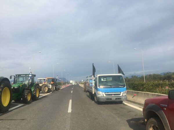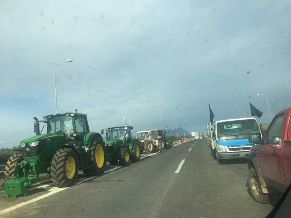 Ίδια εικόνα και στον κόμβο της Θουρίας, έξω από την Καλαμάτα όπου οι αγρότες κρατούν τα τρακτέρ τους στον τόπο των κινητοποιήσεών τους, μετά και τη σχετική απόφαση που ελήφθη από την Πανελλαδική Συντονιστική των μπλόκων στον Παλαμά Καρδίτσας. Τα τρακτέρ βρίσκονται σε ασφαλές σημείο στο ρεύμα εισόδου, έχοντας ανοίξει το ρεύμα εξόδου, η είσοδος των οχημάτων προς την Καλαμάτα γίνεται μέσω παράδρομου (από διόδια σε διόδια).