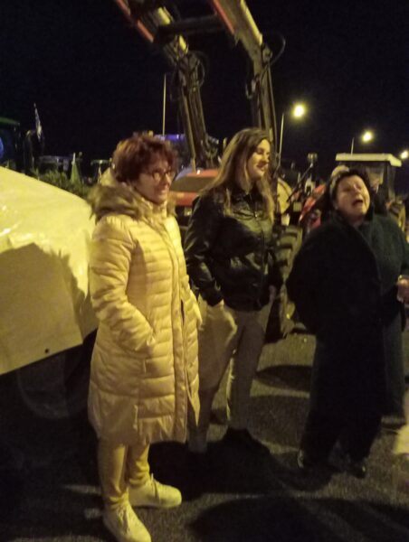 “Εχθές 28/12 το απόγευμα, πήγε αντιπροσωπεία από το Δ.Σ του συλλόγου μας στο μπλοκο των αγροτών στη Θουρία που εδώ και μέρες βρίσκονται στο δρόμο του αγώνα. Μαζί εμάς ήρθαν και γυναίκες που είναι μέλη του συλλόγου. Δείξαμε έμπρακτα την υποστήριξη μας και την αλληλεγγύη, μιλήσαμε με γυναίκες, που ήταν στο μπλόκο, για τον σύλλογο μας και για την ΟΓΕ, μας δέχτηκαν με χαρά και μιλήσαμε για τα πρόβλημα που αντιμετωπίζουν και ότι δεν πάει άλλο και παλεύουν να μην ξεκληριστούν απο μια πολιτική που οδηγεί στη συγκέντρωση της γης και της παραγωγής στα χέρια μιας χούφτας επιχειρηματικών ομίλων. Ενώνουμε τη φωνή μας με τους βιοπαλαιστές αγρότες γυναίκες και άνδρες, που δίνουν αγώνα επιβίωσης στα μπλόκα του αγώνα, για να μπορέσουν να ζήσουν στον τόπο τους από τον κόπο της δουλειάς τους.”