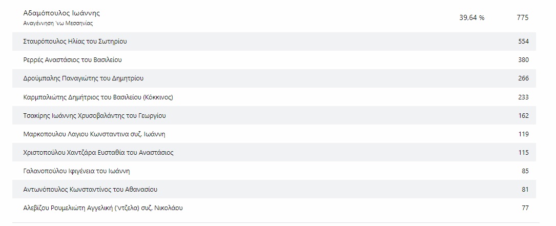 Σύμφωνα με τα στοιχεία στη σταυροδοσία προηγούνται, ανά συνδυασμό οι κάτωθι: