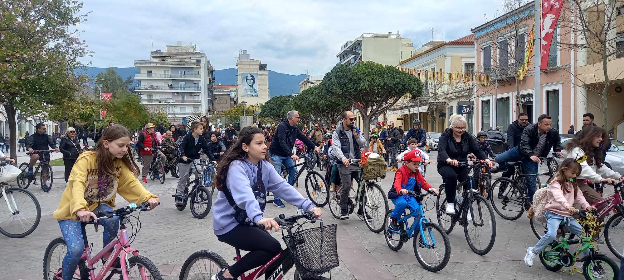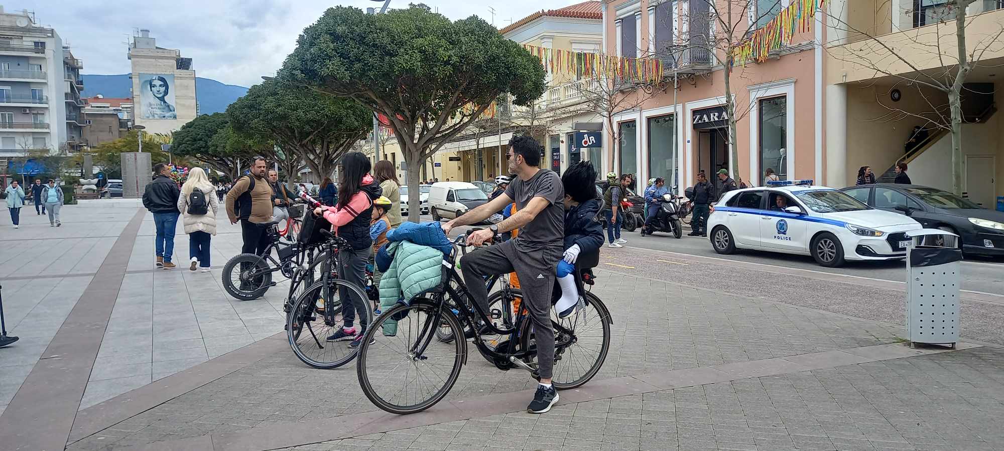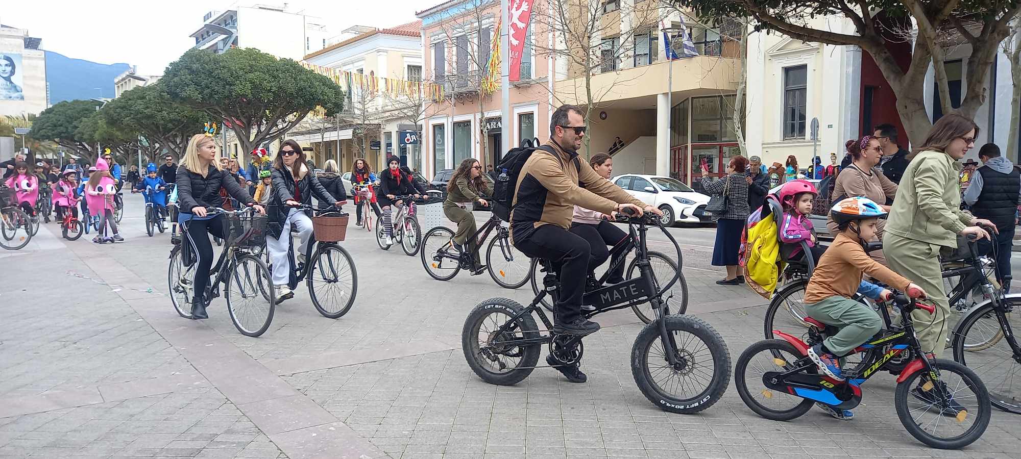 Με περίσσια αποκριάτικη διάθεση μικροί και μεγάλοι συμμετείχαν το πρωί του Σαββάτου στην ποδηλατάδα που διοργανώθηκε στο πλαίσιο των εκδηλώσεων του 11ου καλαματιανού καρναβαλιού.
