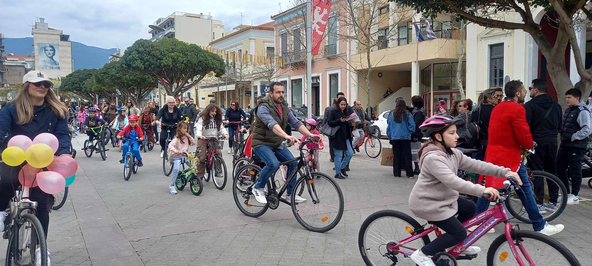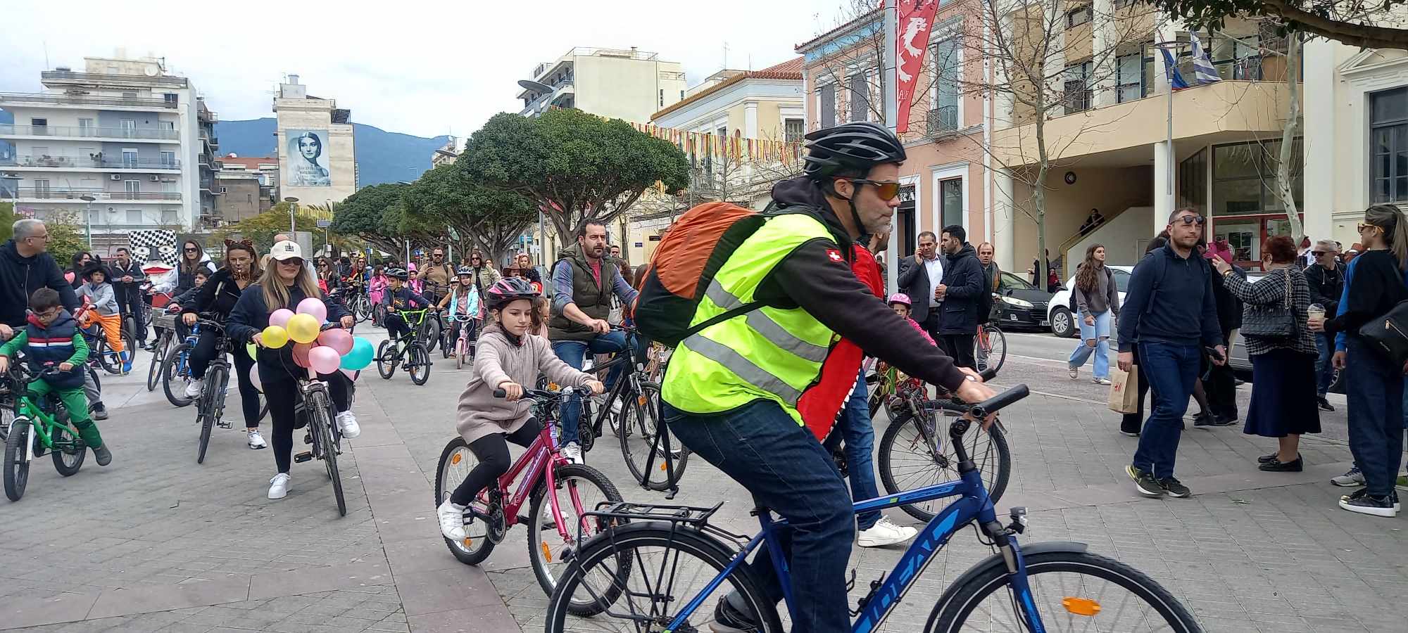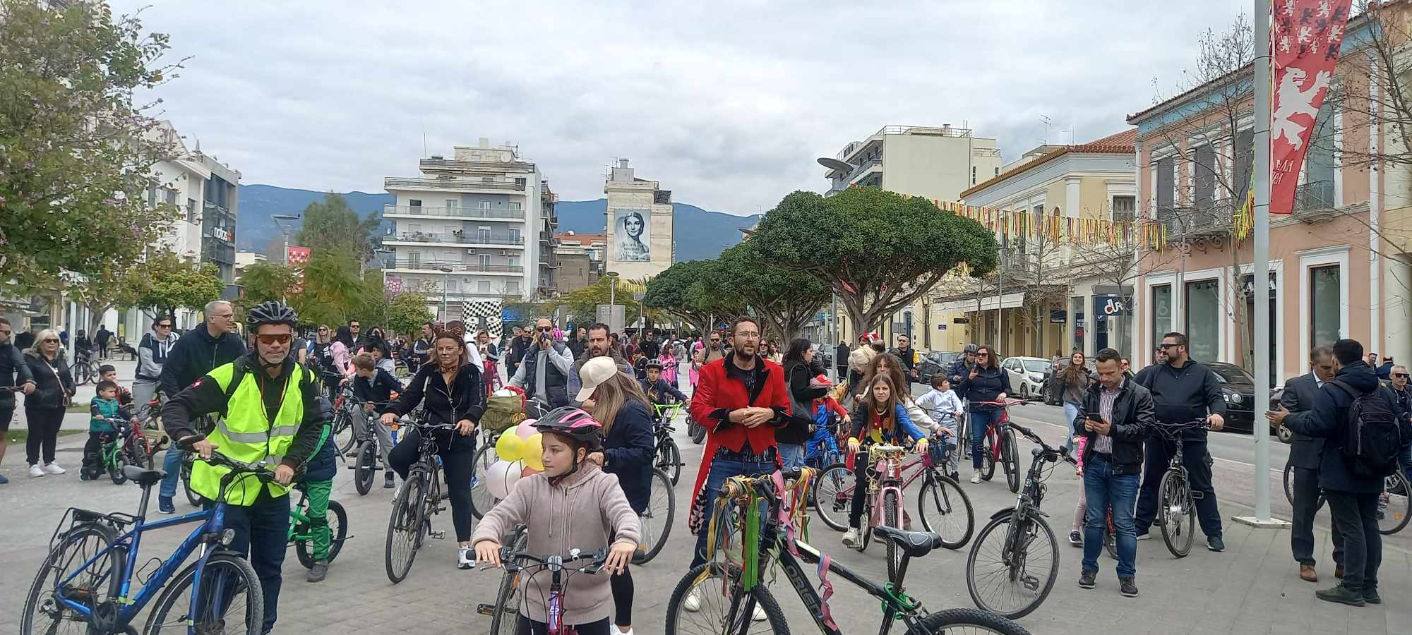 Με περίσσια αποκριάτικη διάθεση μικροί και μεγάλοι συμμετείχαν το πρωί του Σαββάτου στην ποδηλατάδα που διοργανώθηκε στο πλαίσιο των εκδηλώσεων του 11ου καλαματιανού καρναβαλιού.