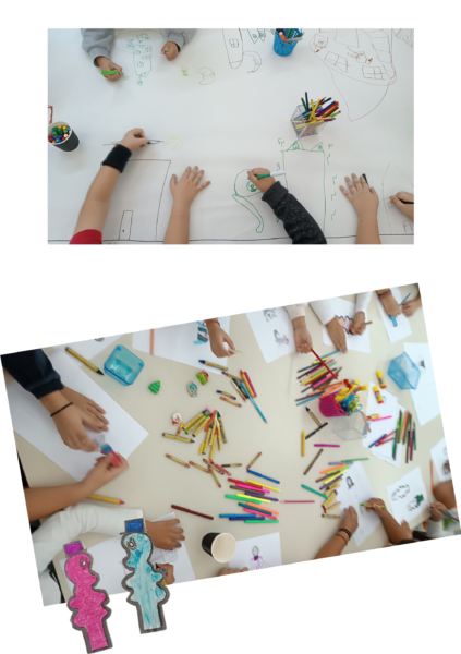 Έτσι λοιπόν, η ομάδα της Λαϊκής Βιβλιοθήκης εργάστηκε και προετοίμασε τα “εκπαιδευτικά και καλλιτεχνικά εργαστήρια” της Πινακοθήκης Σύγχρονης Ελληνικής Τέχνης, με στοχοθεσία και εκπαιδευτικό προσανατολισμό, αλλά και με ελεύθερο χώρο δημιουργίας κι έκφρασης.