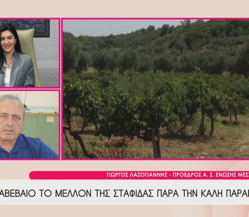Στην εκπομπή «Τι Λες Τώρα» με την Αναστασία Μάντζαρη (καθημερινά 17:00-19:00),ο Πρόεδρος Α.Σ. Ένωσης Μεσσηνίας, Γιώργος Λαζόγιαννης, μίλησε για την κρίσιμη κατάσταση που επικρατεί στην καλλιέργεια της σταφίδας και σε ότι αφορα στην τιμή, σημείωσε οτι φέτος ειναι υψηλότερη κατα