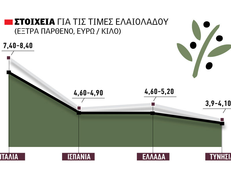 Από 4,60 έως 5,20 ευρώ η κλιμάκωση στο ελαιόλαδο, με 3,80 ο βιομηχανικός άσσος