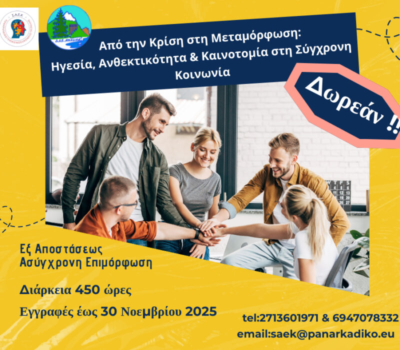 Δωρεάν επιμορφωτικό «Από την Κρίση στη Μεταμόρφωση: Ηγεσία, Ανθεκτικότητα & Καινοτομία στη Σύγχρονη Κοινωνία»