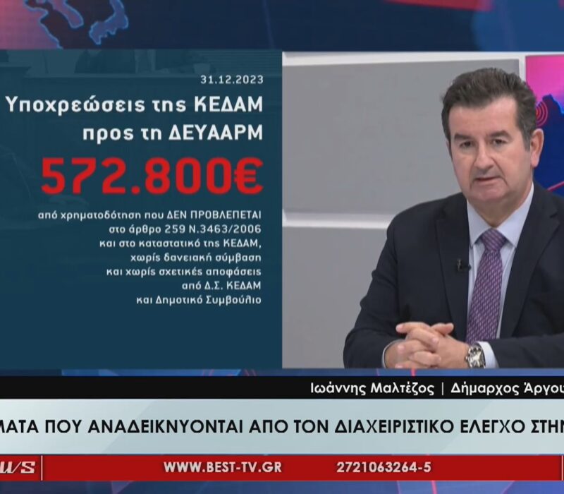 Ο Γιάννης Μαλτέζος για τα ζητήματα που αναδεικνύονται από τον διαχειριστικό έλεγχο στην ΚΕΔΑΜ, τα έργα και τις στοχεύσεις στον δήμο Άργους-Μυκηνών (video)