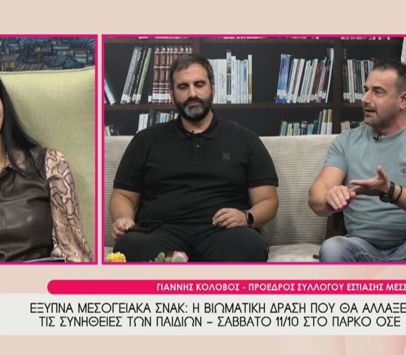 Ο πρόεδρος του συλλόγου εστίασης Μεσσηνίας Γιάννης Κολοβός και ο Σταύρος Γρίβας μέλος του συλλόγου εστίασης Μεσσηνία, ήταν καλεσμένοι στην εκπομπή ''Τι Λες Τώρα'' με την Αναστασία Μάντζαρη, που προβάλλεται απο την τηλεόραση BEST καθημερινά 17:00-19:00, και μας μίλησαν για