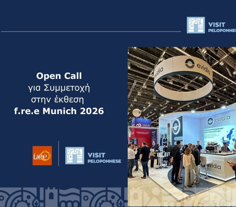 Η Περιφέρεια Πελοποννήσου, μέσω του Visit Peloponnese, προσκαλεί επαγγελματίες και φορείς του τουρισμού να εκδηλώσουν ενδιαφέρον για συμμετοχή στο περίπτερό της, στο πλαίσιο της διεθνούς έκθεσης f.re.e Munich 2026, η οποία θα πραγματοποιηθεί στο Μόναχο από 18 έως 22 Φεβρουαρίου