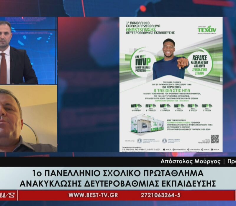 1ο Πανελλήνιο Σχολικό Πρωτάθλημα Ανακύκλωσης β’ βαθμιας Εκπαίδευσης από την ΤΕΧΑΝ – Απ. Μούργος: «Μεγάλη ήδη η συμμετοχή σε μια ξεχωριστή δράση ευαισθητοποίησης» (video)