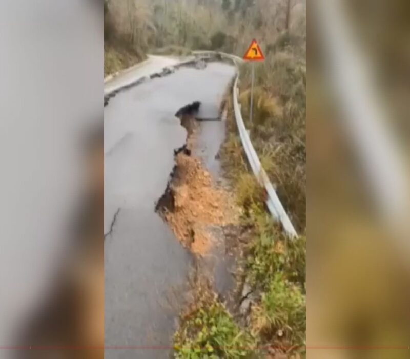 Καθίζηση οδοστρώματος στην περιοχή Πλάτανος – Ίκλαινα μετά τις έντονες βροχοπτώσεις (pic’s)