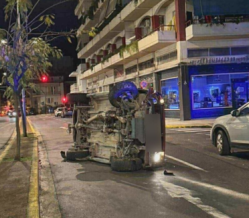 Χθες στο κέντρο της Καλαμάτας: ΙΧ προσέκρουσε σε σταθμευμένα αυτοκίνητα και ανετράπη