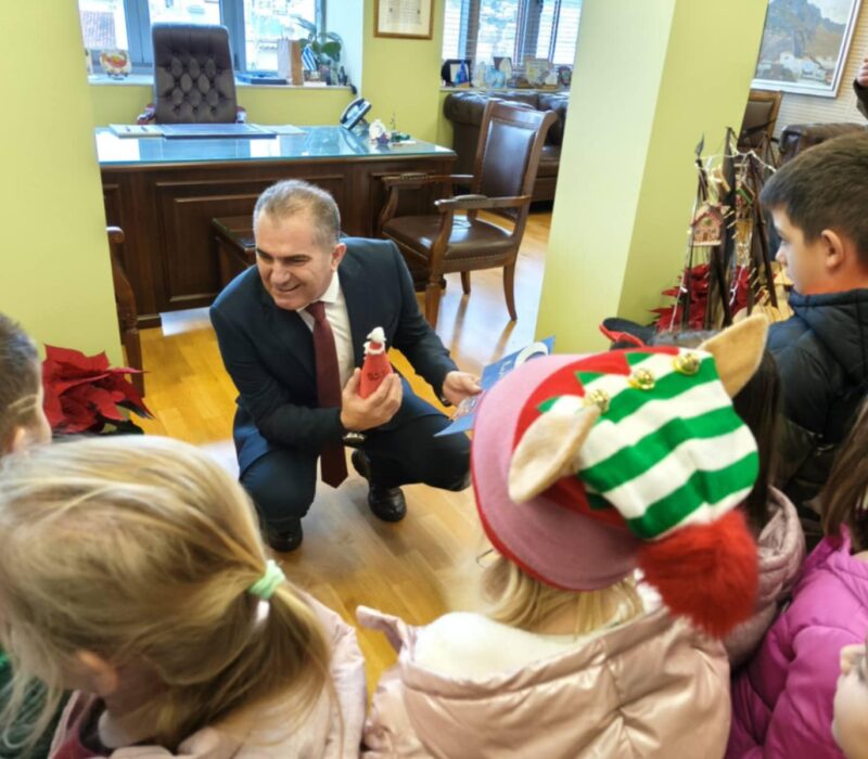 Παραμονή Χριστουγέννων σήμερα Τετάρτη 24 Δεκεμβρίου 2025 και εκατοντάδες παιδικές φωνές αντήχησαν στο γραφείο του Δημάρχου και σε όλο το Δημαρχείο για τα κάλαντα των Χριστουγέννων. Επίσης, χορωδία, από την 120 ΠΕΑ και το 9ο Σύνταγμα Πεζικού, έψαλε τα κάλαντα των Χριστουγέννων