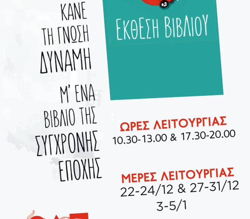 ΔΕΛΤΙΟ ΤΥΠΟΥ Για ακόμη μία χρονιά, στον Πολυχώρο Πολιτισμού της ΚΝΕ «Μικρόβιο – Γιώργος Βουβαλέας» φιλοξενείται η Έκθεση Βιβλίου της Σύγχρονης Εποχής, προσκαλώντας μικρούς και μεγάλους σε ένα ταξίδι γνώσης, σκέψης και έμπνευσης. Η έκθεση βρίσκεται ήδη σε εξέλιξη και προσφέρει στο κοινό τη δυνατότητα