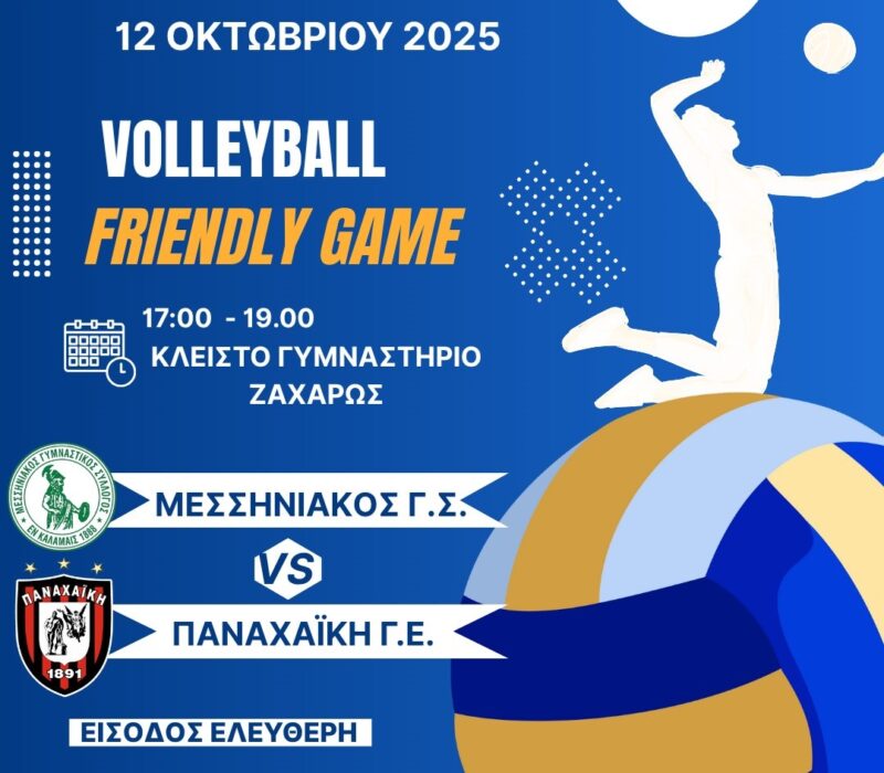 Ένας σπουδαίος φιλικός αγώνας βόλεϊ γυναικών θα διεξαχθεί στο ουδέτερο γήπεδο της Ζαχάρως, ανάμεσα σε δύο ιστορικές ομάδες του ελληνικού βόλεϊ, του ΜΕΣΣΗΝΙΑΚΟΥ Γ.Σ. και της ΠΑΝΑΧΑΪΚΗΣ Γ.Ε., στο πλαίσιο της προετοιμασίας τους για τη νέα αγωνιστική περίοδο. Ο αγώνας, που