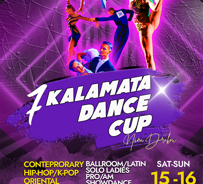Το Σαββατοκύριακο 15 - 16 Νοεμβρίου 2025 θα πραγματοποιηθεί στην Καλαμάτα το 7ο Διεθνές Κύπελλο Χορού «Kalamata Dance Cup 2025» υπό την αιγίδα και υποστήριξη του Υπουργείου Πολιτισμού, του Υπουργείου Τουρισμού, του Ελληνικού Οργανισμού Τουρισμού (Ε.Ο.Τ), της Περιφέρειας Πελοποννήσου, του Δήμου