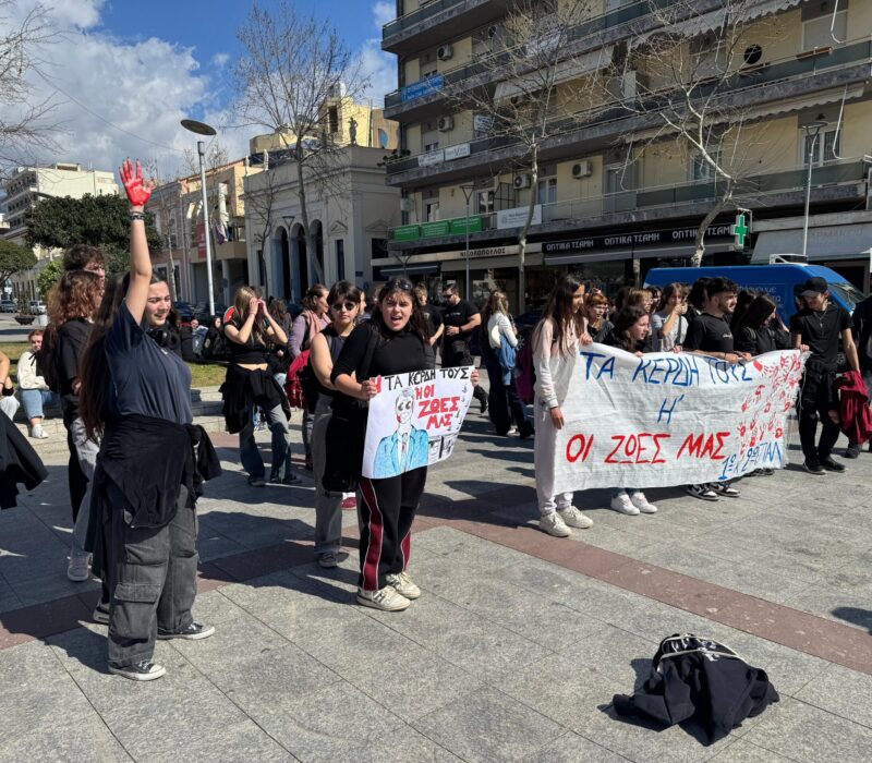 Δυναμική η κινητοποίηση των μαθητών της Καλαμάτας για το έγκλημα των Τεμπών