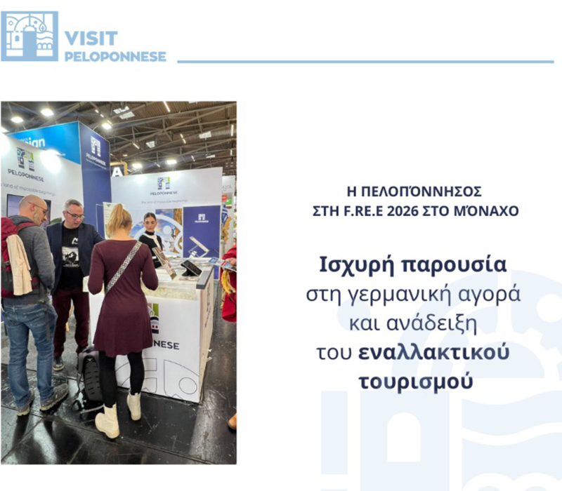 VisitPeloponnese | Η Πελοπόννησος στη f.re.e 2026 του Μονάχου με έμφαση στον εναλλακτικό τουρισμό και τη γερμανική αγορά