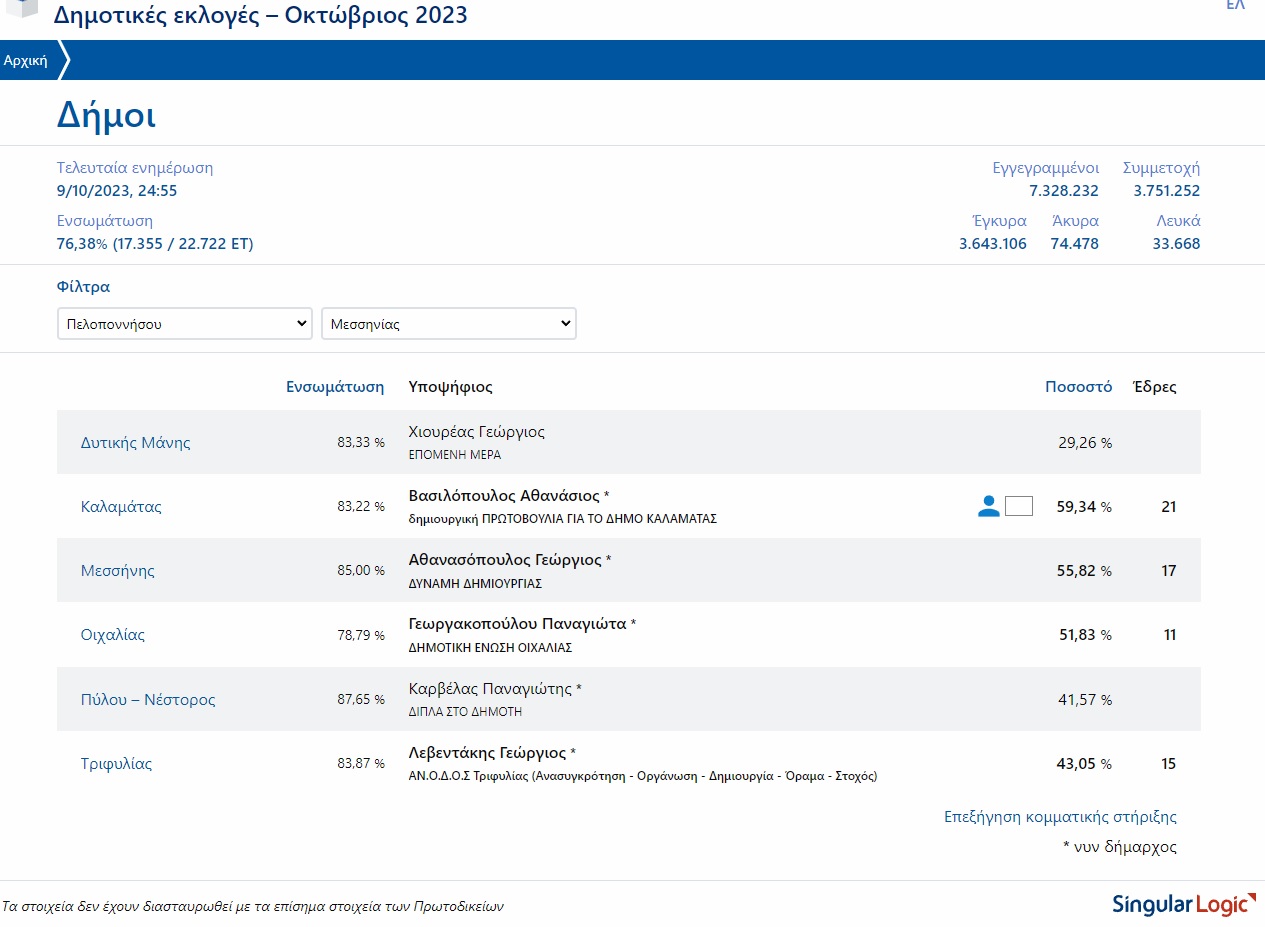 Μπροστά στη Μεσσήνη ο συνδυασμός του Γιώργου Αθανασόπουλου