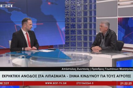 Η ραγδαία αύξηση του κόστους των λιπασμάτων, ως απόρροια της πολεμικής έντασης στη Μέση Ανατολή, προκαλεί σοβαρές επιπτώσεις στις ελληνικές καλλιέργειες. Το ζήτημα ανέδειξε, μιλώντας στο κεντρικό δελτίο ειδήσεων του BEST, ο Απόστολος Ζωντανός, πρόεδρος των Ελευθέρων Επαγγελματιών Γεωπόνων Μεσσηνίας,