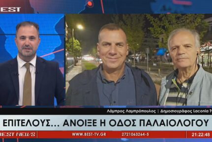 Στην κυκλοφορία δόθηκε η κεντρική οδός Παλαιολόγου στη Σπάρτη. Ο δήμαρχος Σπάρτης Μιχάλης Βακαλόπουλος μιλώντας στο Κεντρικό Δελτίο της τηλεόρασης BEST τόνισε: «Είναι έργο που έπρεπε να είχε ολοκληρωθεί από το 2023 η πόλη βρισκόταν σε μια ιδιότυπη ομηρία… Έχουμε