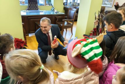 Παραμονή Χριστουγέννων σήμερα Τετάρτη 24 Δεκεμβρίου 2025 και εκατοντάδες παιδικές φωνές αντήχησαν στο γραφείο του Δημάρχου και σε όλο το Δημαρχείο για τα κάλαντα των Χριστουγέννων. Επίσης, χορωδία, από την 120 ΠΕΑ και το 9ο Σύνταγμα Πεζικού, έψαλε τα κάλαντα των Χριστουγέννων