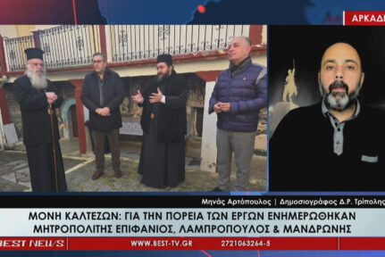 Οι εξελίξεις γύρω από την Μονή Καλτεζών και την ενημέρωση που έλαβαν για την πορεία των έργων ο Μητροπολίτης Επιφάνιος και οι Λαμπρόπουλος και Μανδρώνης βρέθηκαν ψηλά στην ατζέντα της σημερινής στήλης «Τα νέα της Αρκαδίας» σε σχολιασμό του Μηνά